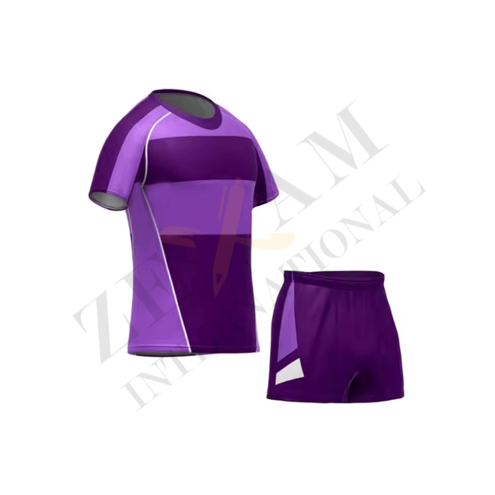 Rugby uniforms are built for toughness and comfort, featuring durable jerseys, shorts, and socks that withstand intense play. Designed with breathable, stretchable fabrics, they ensure mobility, reduce wear and tear, and proudly display team colors, logos, and player numbers.